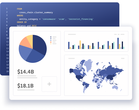 Build bespoke analyses and alerting with the industry’s most trusted blockchain intelligence to generate new leads and take action on data-driven insights to advance your mission.