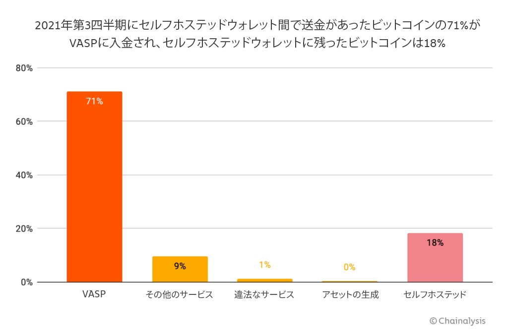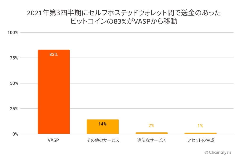 1.アンホステッドウォレットに送金されたビットコインの資金の大部分はVASPから移動