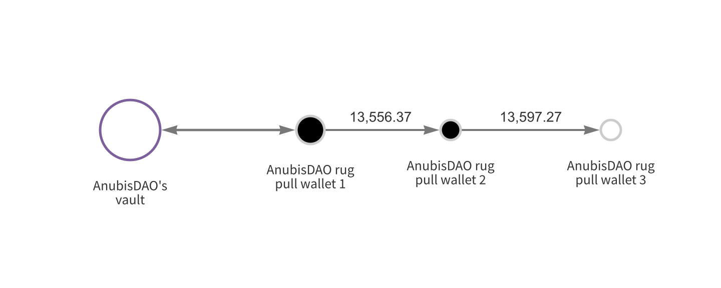 The thief then moved that wETH through a series of intermediary wallets. Soon after this, the Twitter account that had acted as the public face of AnubisDAO went offline, and ANKH’s value plummeted to zero.