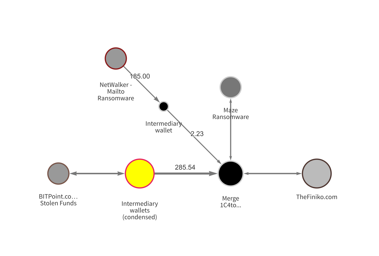 This launderer has received millions of dollars’ worth of cryptocurrency from addresses associated with ransomware, exchange hacks, and other forms of cryptocurrency-based crime. While the amount the service has sent to Finiko is quite small — under 1 BTC total — it serves as an example of how a scam can also be used to launder funds derived from other criminal schemes. It’s also possible that Finiko has received funds from other laundering services we’ve yet to identify.