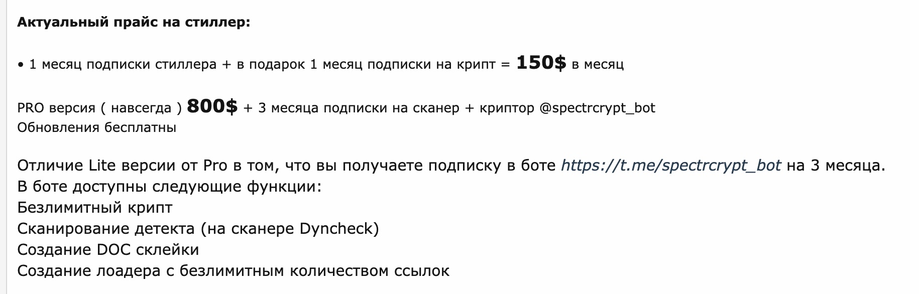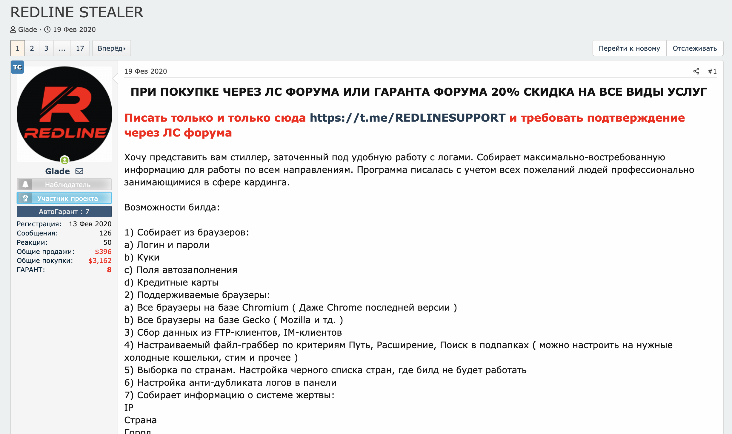 Many of the malware families described above are available to purchase for relatively little money on cybercriminal forums. For instance, the screenshots below show an advertisement for Redline, an info stealer malware, posted on a Russian cybercrime forum.