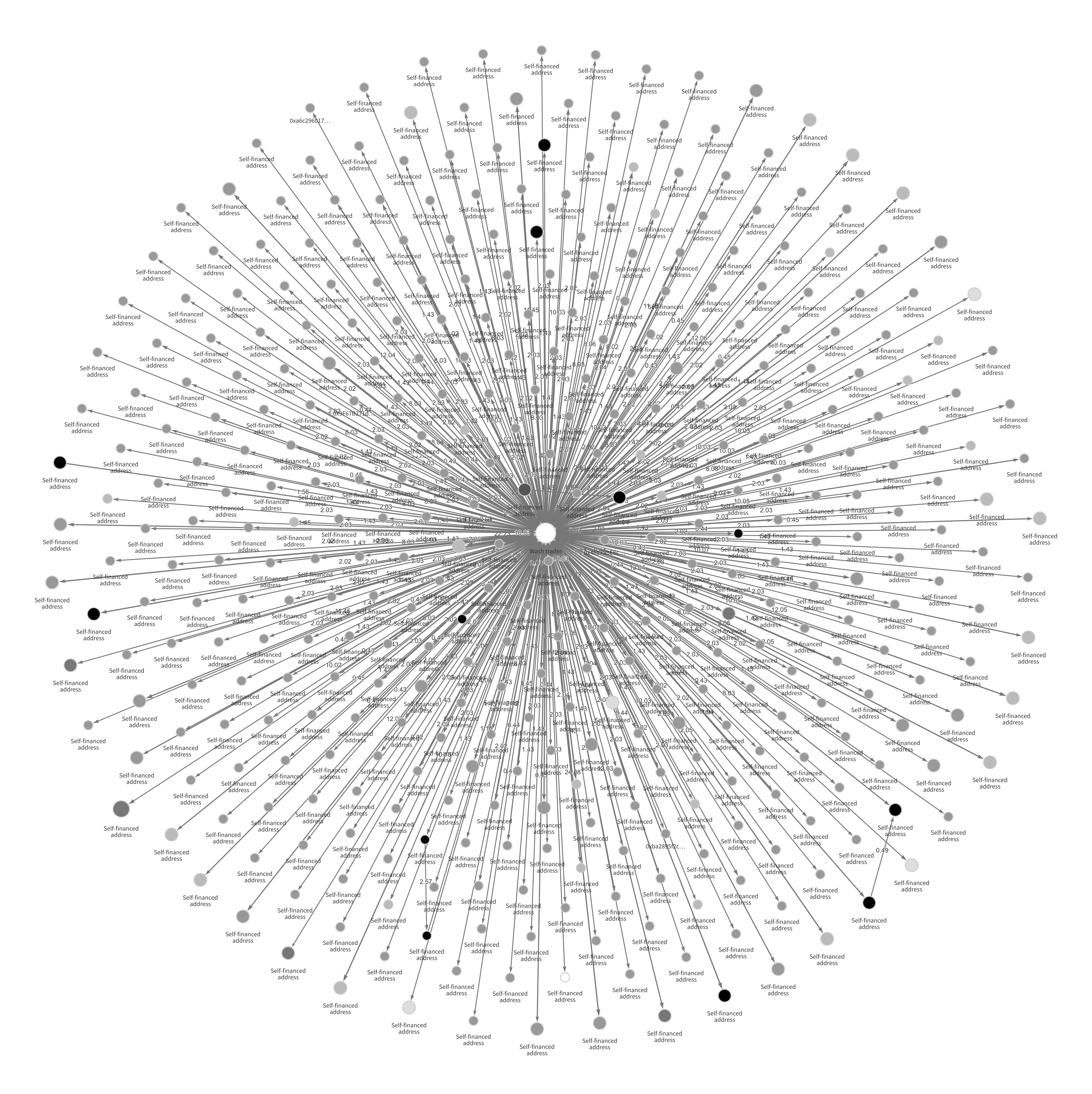 This activity fits a pattern for Seller 1. The Reactor graph below shows similar relationships between Seller 1 and hundreds of other addresses to which they’ve sold NFTs.