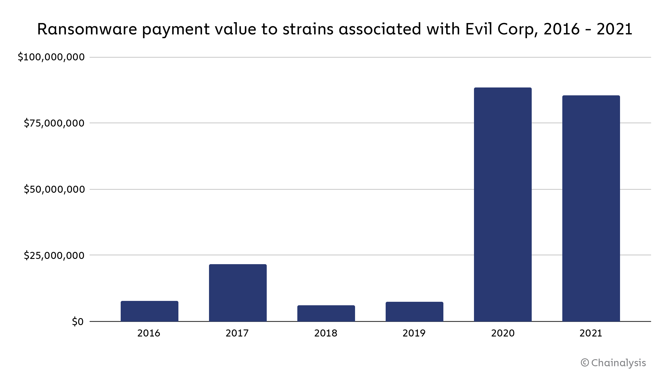 Unfortunately, rebranding appears to have worked for Evil Corp in many cases, as victims paid at least $85 million in ransoms to strains associated with the organization.