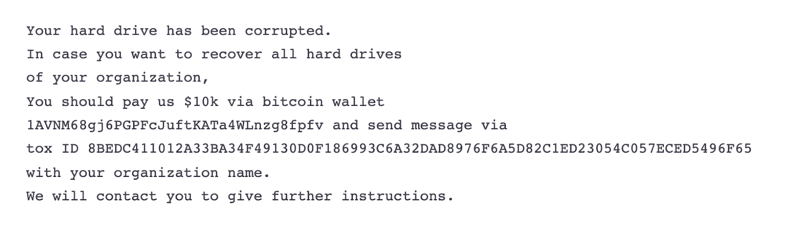 In cases where a ransomware strain contains no mechanism to collect payment or allow victims to recover their files, we can be more certain that money isn’t the attackers’ primary motivation. And that’s exactly what we saw in a recent ransomware attack on Ukrainian government agencies by hackers believed to be associated with the Russian government.