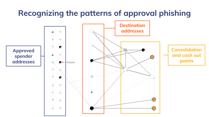 We believe that the industry can address the approval phishing scam problem in a variety of ways, from user education to employing pattern recognition tactics similar to those we used to compile this data. Generally speaking, the relevant addresses and wallets in approval phishing scams are: