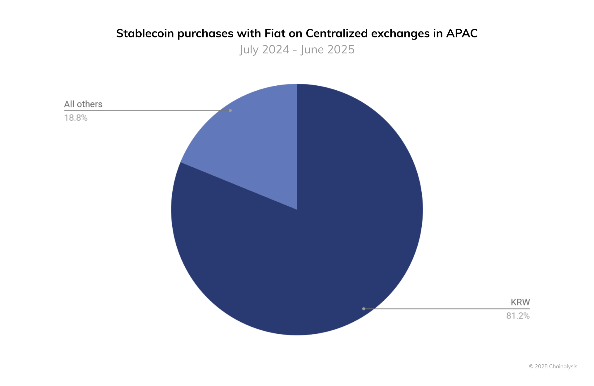 Stablecoin usage in South Korea is rising quickly, with major exchanges like Bithumb and Coinone adding USDT/KRW pairs starting from December 2023. KRW purchases of stablecoins reached $64 billion in the 12 months to June 2025, suggesting strong demand from traders who use them for liquidity, hedging, and faster rotations between assets.* Domestic appetite for stablecoins is driving an impact on the policy landscape, with legislators and regulators alike now considering the development of a regulatory framework for KRW-backed stablecoins.