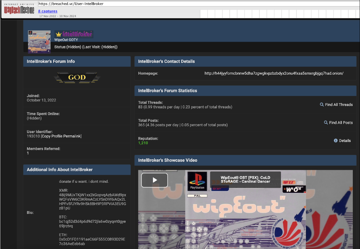 The Bitcoin address IntelBroker provided (bc1qj52d3d4p6d9d72jls6w0zyqrrt0gye69jrctvq) revealed his complete financial infrastructure.