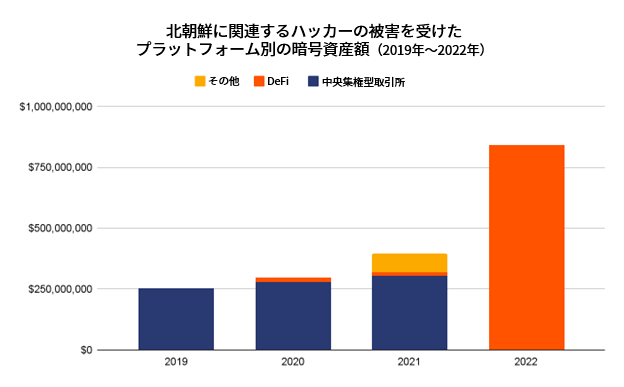 さらに悪いことに、DeFiプロトコルから窃取された暗号資産は、特に2022年に、北朝鮮政府に関連するハッキンググループへと流れていました。