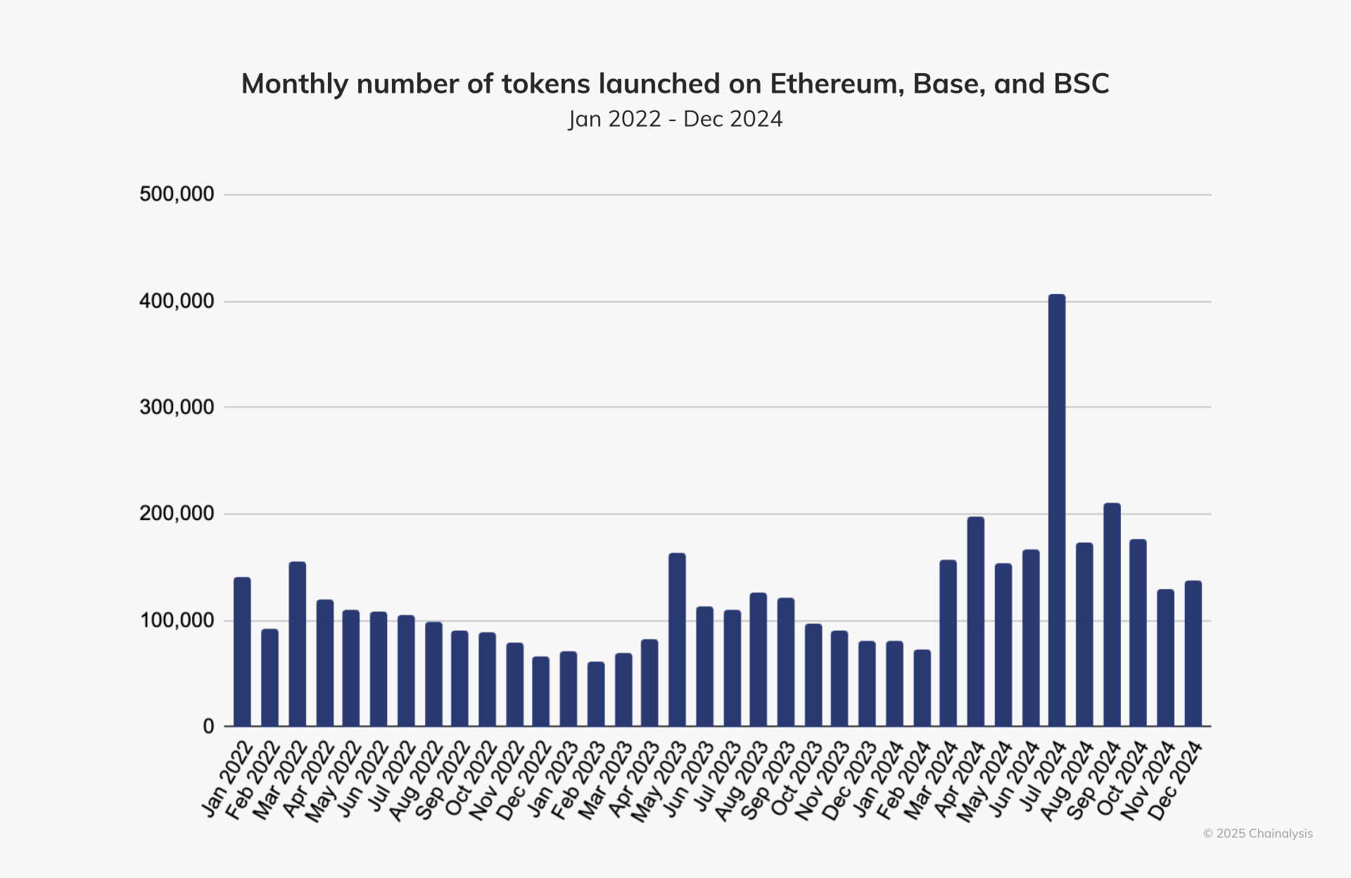 In 2024, more than 2 million tokens were launched in the blockchain ecosystem, approximately 0.87 million of which (42.35%) were listed on a DEX.