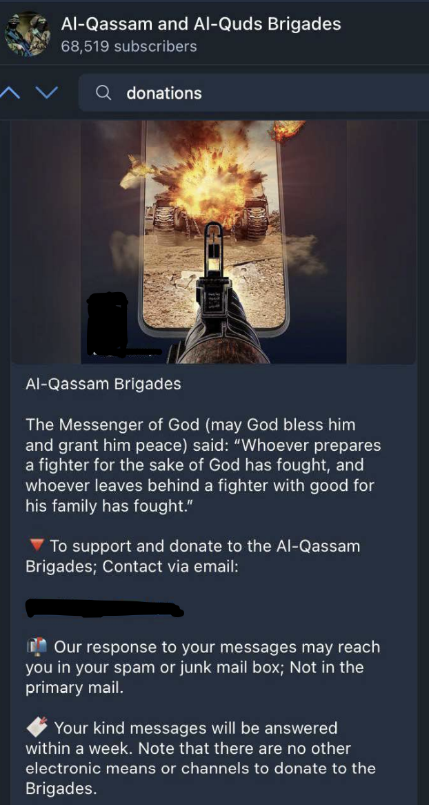 According to the DOJ, their disruption targeted a complex web of cryptocurrency addresses tied to Hamas that were being used to funnel financial resources to the terrorist organization. Hamas supporters were encouraged to donate to a set of at least 17 crypto addresses shared in an encrypted group chat. Additionally, supporters were encouraged to reach out for provision of a cryptocurrency address via email, one that has long been utilized by Al Qassam Brigades to fundraise.