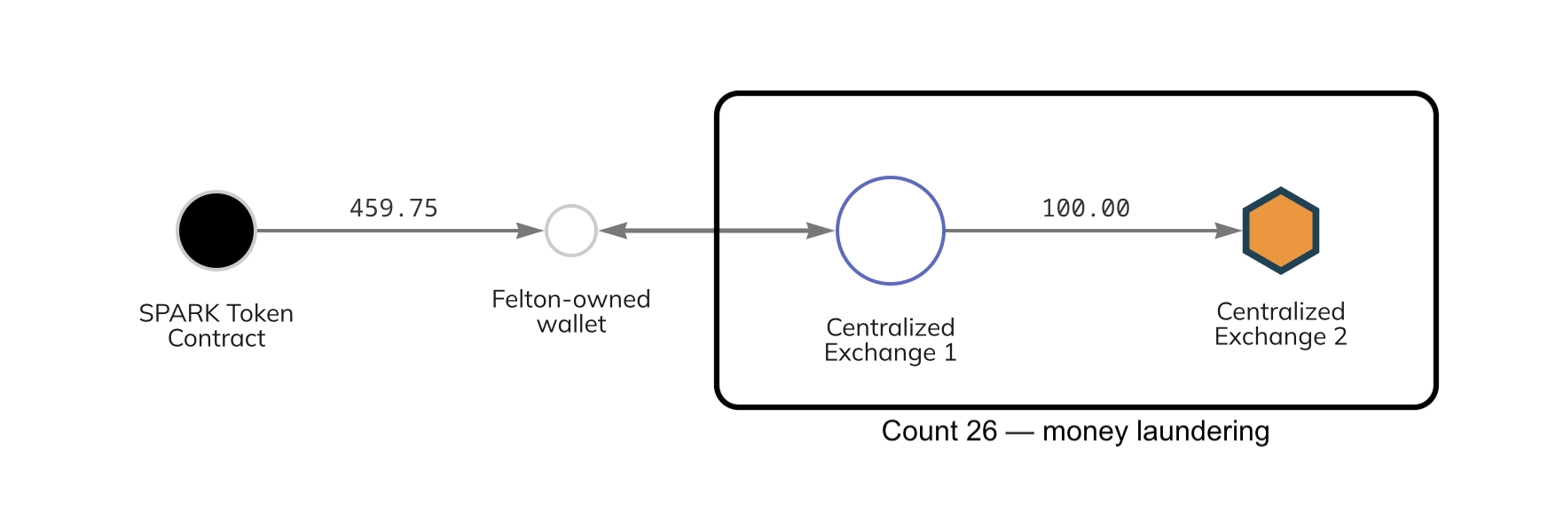 Due to misrepresentations and omissions made by Felton, numerous investors sent wire transfers of cryptocurrency to the ICO smart contracts in exchange for FLiK and SPARK tokens. These transactions – several of which Beth detailed in her testimony – led Felton to be charged with 16 counts of wire fraud.