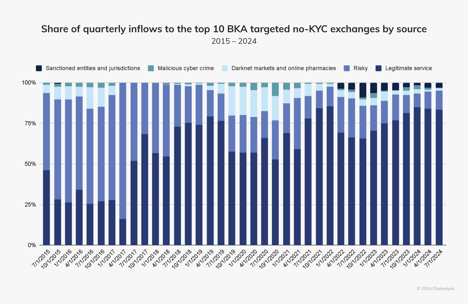 This material is for informational purposes only, and is not intended to provide legal, tax, financial, or investment advice. Recipients should consult their own advisors before making these types of decisions. Chainalysis has no responsibility or liability for any decision made or any other acts or omissions in connection with Recipient’s use of this material.