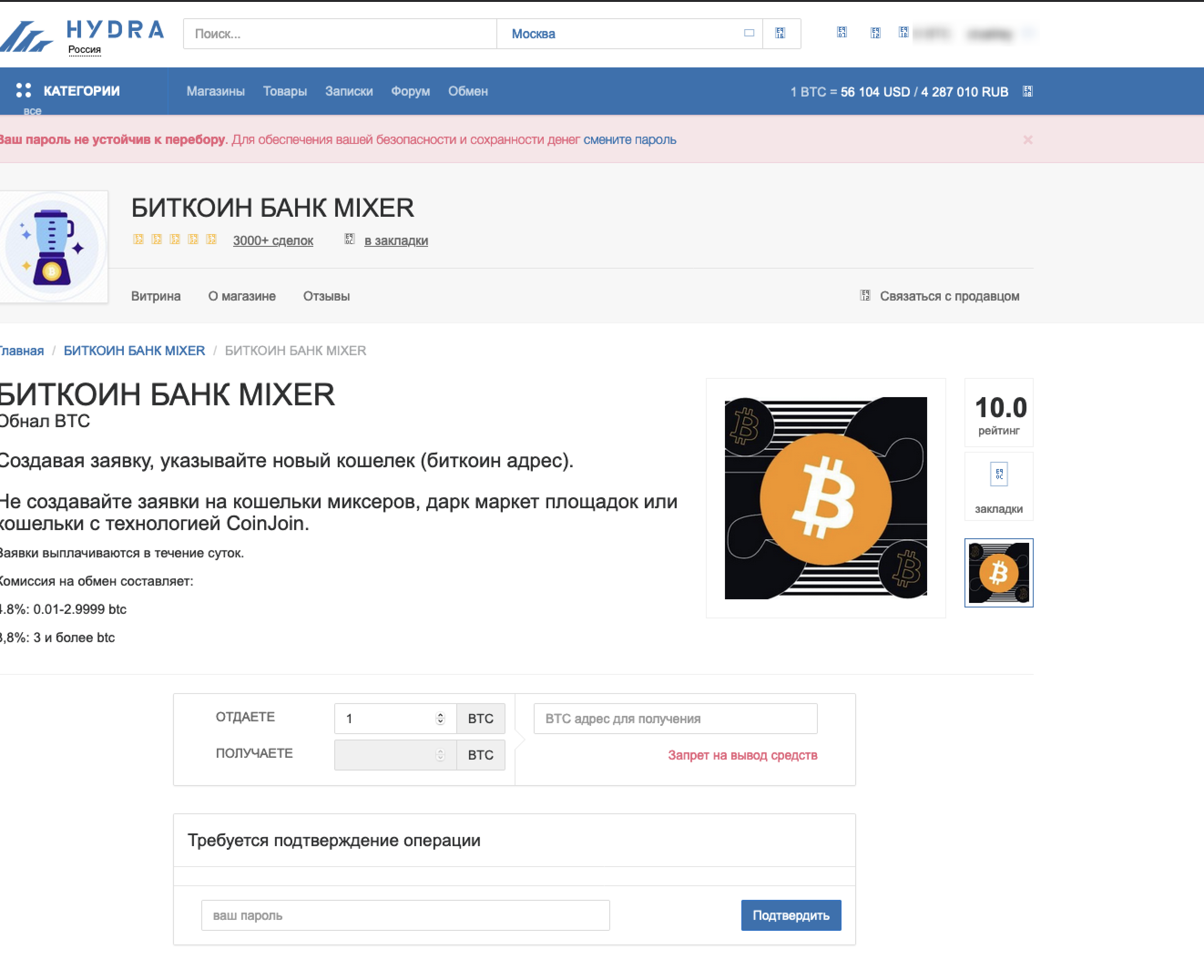 Both Hydra itself and its vendors also offered money laundering services, including a tightly-controlled and regimented infrastructure allowing vendors and other cybercriminals to convert cryptocurrency into Russian rubles using a few pre-approved services.