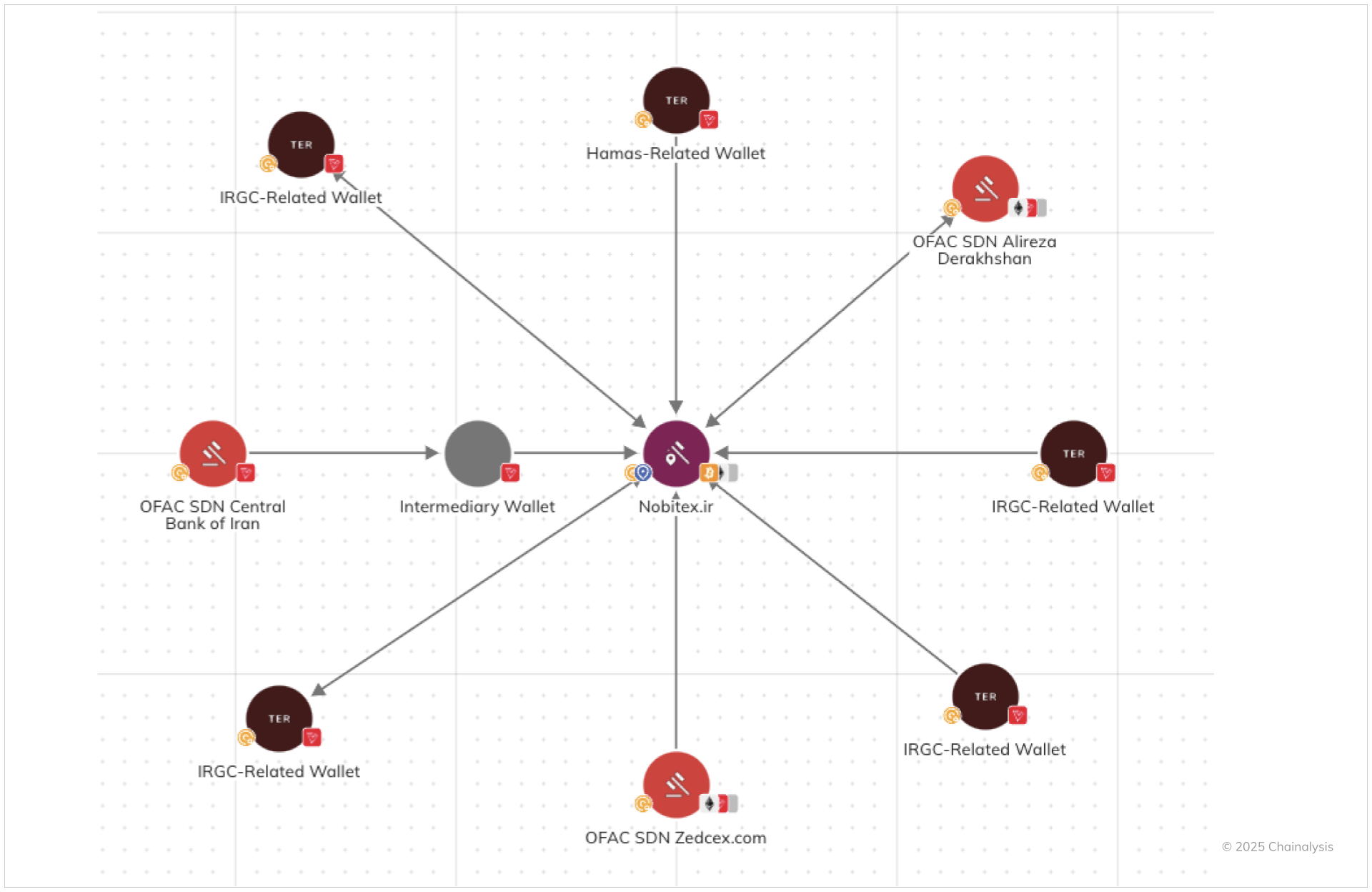 Crypto businesses in sanctioned jurisdictions like Iran routinely move funds to new wallets to obfuscate their activity on the blockchain, knowing that, due to comprehensive sanctions, identification of their wallets make it more difficult for them to access liquidity to mainstream crypto markets. In 2025, hackers exploited Nobitex — Iran’s largest crypto exchange — in a high-profile incident resulting in the theft of over $90 million in assets, underscoring the importance of strong operational and cybersecurity for Iranian platforms that operate with an especially large target on their backs.