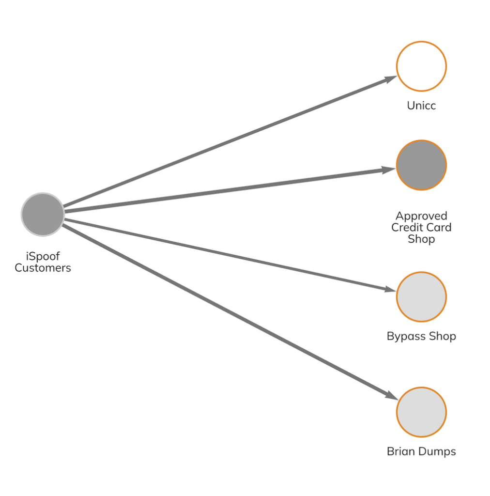 Upon further analysis, we discovered that criminals using iSpoof also sent funds to numerous high profile fraud shops, which are engaged in the sale of personal and sensitive information commonly used to commit fraud.