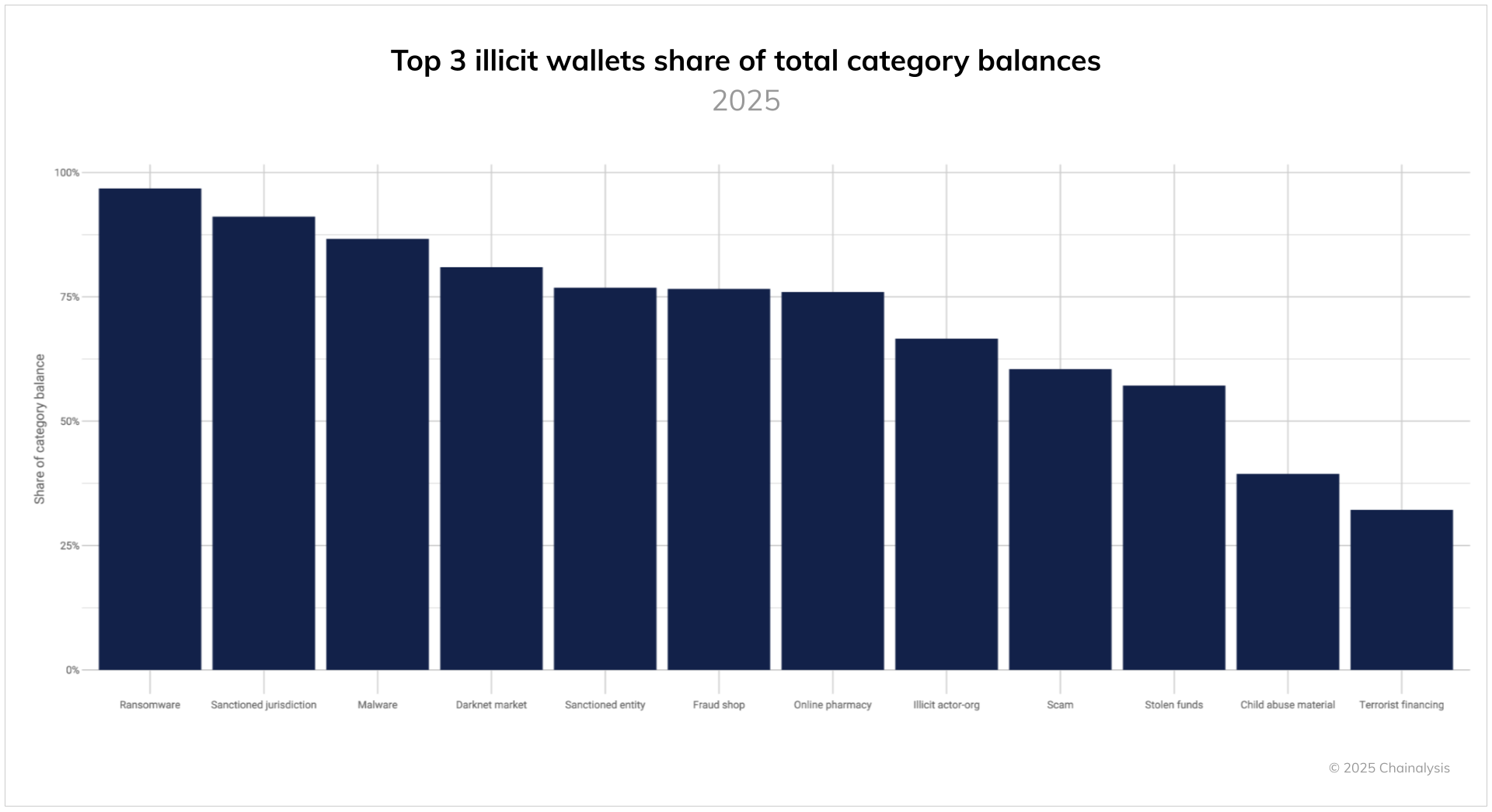 - Illicit entities hold nearly $15 billion in 2025, with stolen funds representing the largest category.