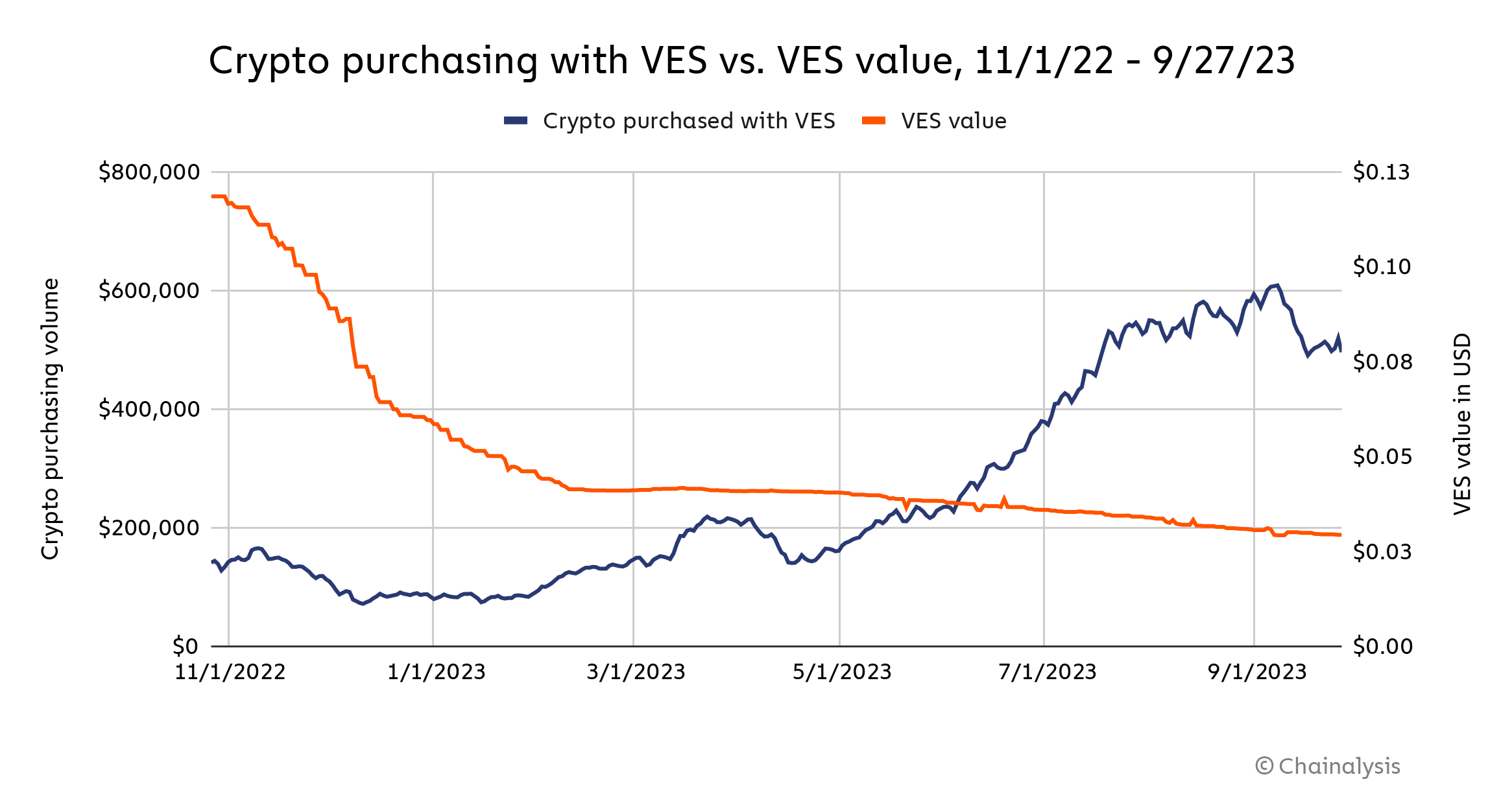 As the Argentinian peso steadily lost value, crypto purchasing trended up, then really spiked in mid-April, around the time Argentina’s inflation crossed 100% for the first time in three decades. We also see a small dropoff in crypto purchasing starting in September, soon after the peso’s value stabilized.
