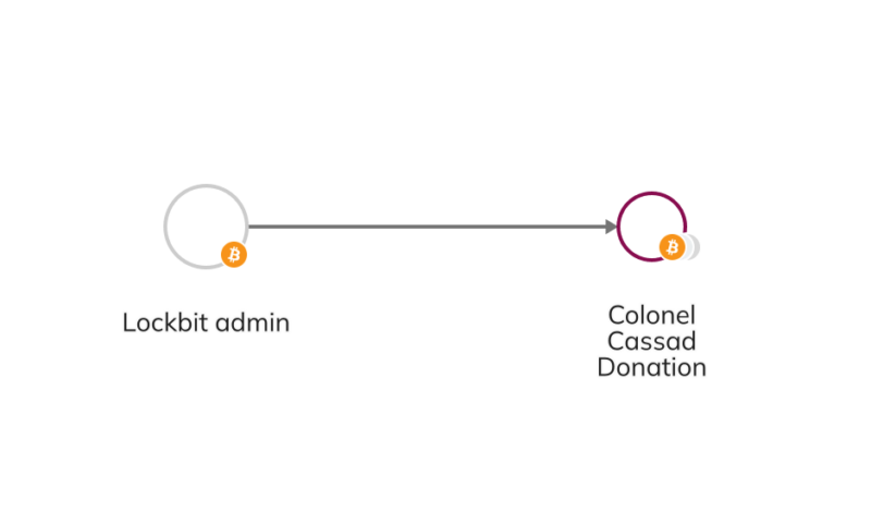 Finally, blockchain analysis also shows that a Lockbit administrator also donated crypto to a pro-Russia self-proclaimed military journalist based in Sevastopol known as Colonel Cassad. Throughout social media, Colonel Cassad has solicited donations for Russian militia group operations in the sanctioned jurisdictions of Donetsk and Luhansk, as we identified early on in the Russian war against Ukraine.