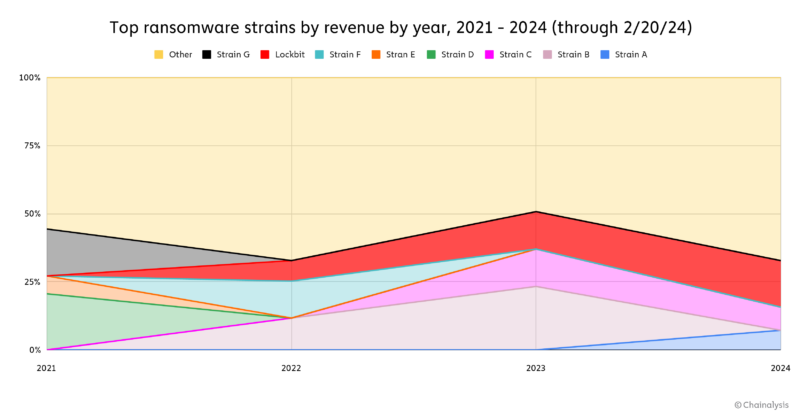 | Year | Lockbit’s rank in ransomware strain revenue |