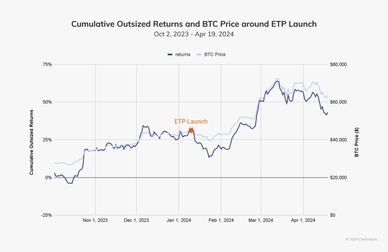 Immediately following the SEC’s approval, the market experienced a global bull run in price, accompanied by positive outsized returns a few weeks after the launch.