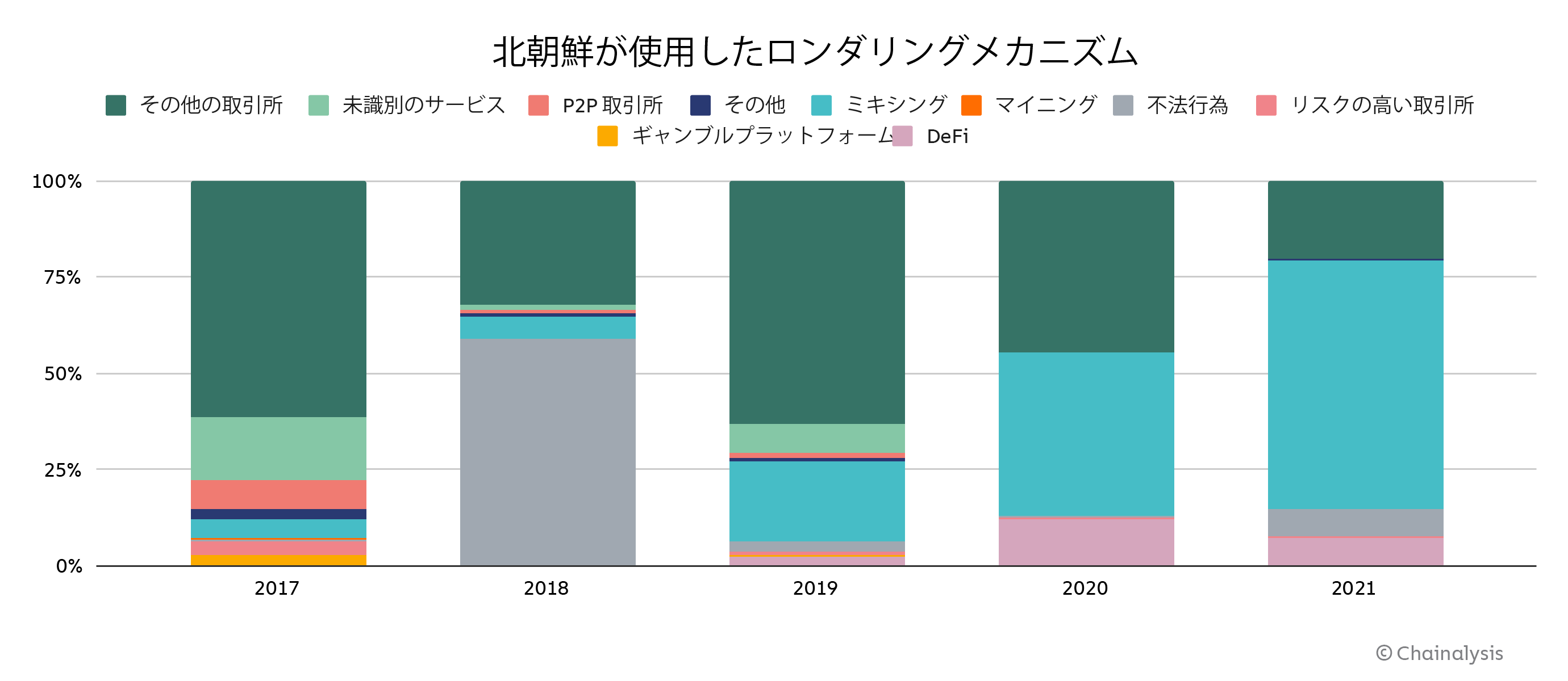 Chainalysisでは実際に、北朝鮮に関係する攻撃者によるミキサーの利用が、2021年に大幅に増加していることを確認しています。