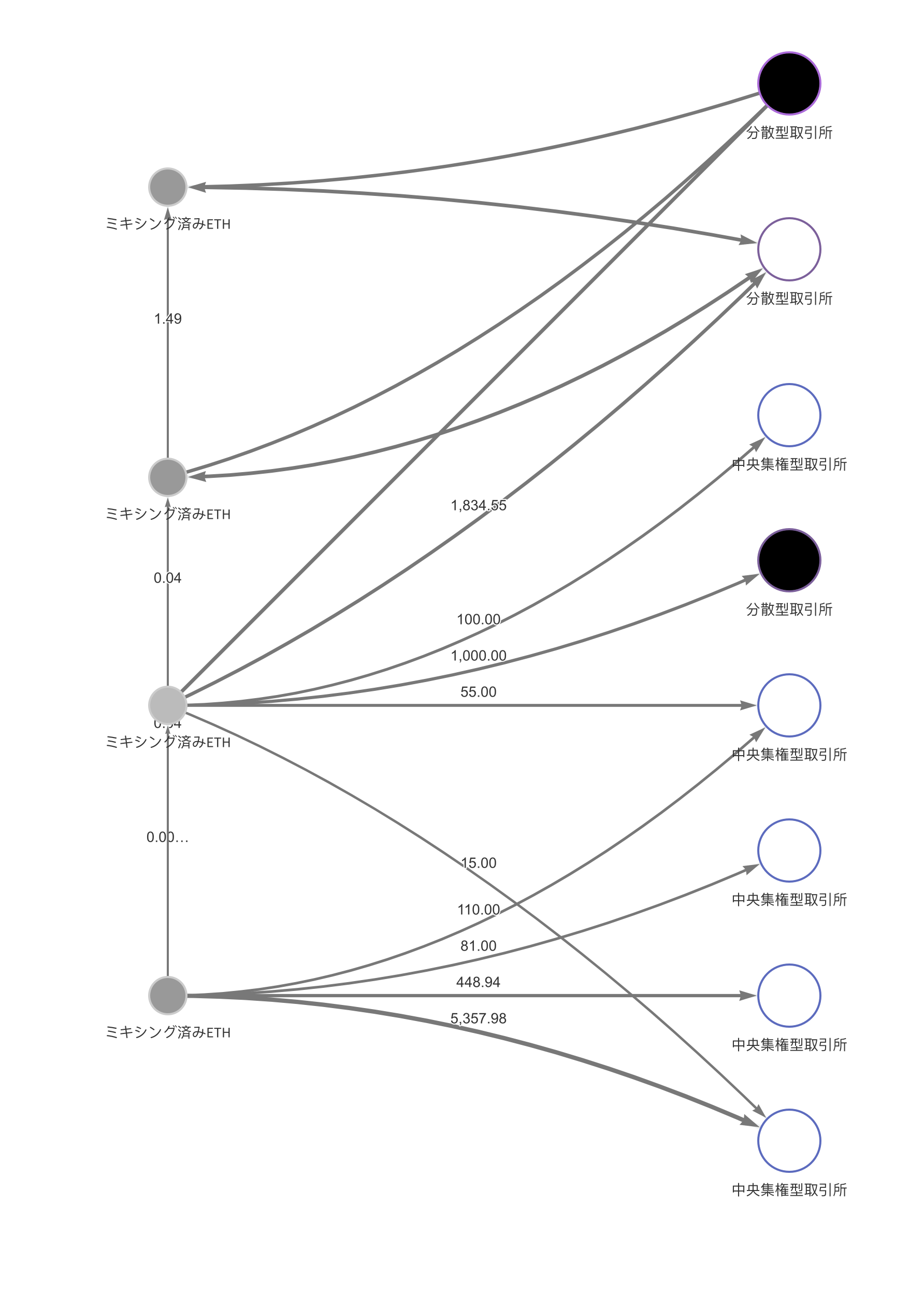 ステージ2:ミックス済みのEtherをDEXおよびCEXに入金し、ビットコインに交換