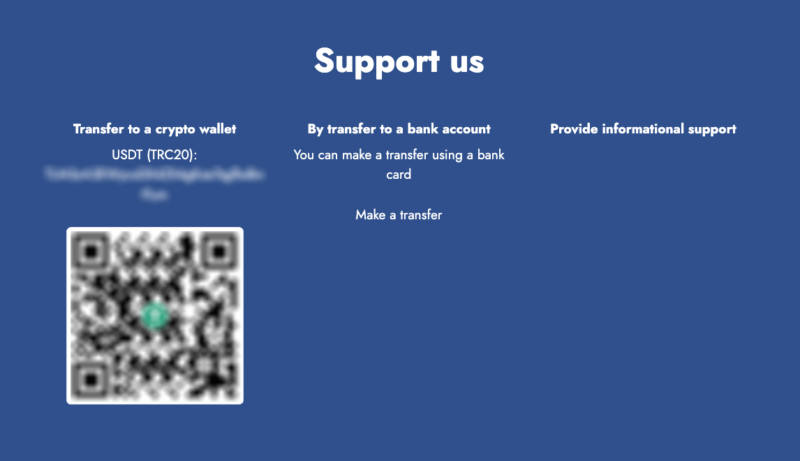 The OFAC designation included a USDT wallet address used to solicit donations, also visible in the screenshot of KB Vostok’s website below.