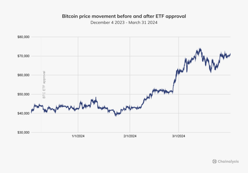 The Securities and Exchange Commission’s (SEC) approval of spot Bitcoin exchange-traded funds (ETFs) on January 10, 2024, marked a significant milestone in the landscape of crypto investment in the United States. Bitcoin ETFs provide a scalable bridge from traditional finance to crypto — a pivotal integration point. “This is the moment that crypto’s gone mainstream,” said Brett Tejpaul, the head of Coinbase Institutional, speaking on a panel discussing the impact of the Bitcoin ETF at Chainalysis Links NYC 2024.