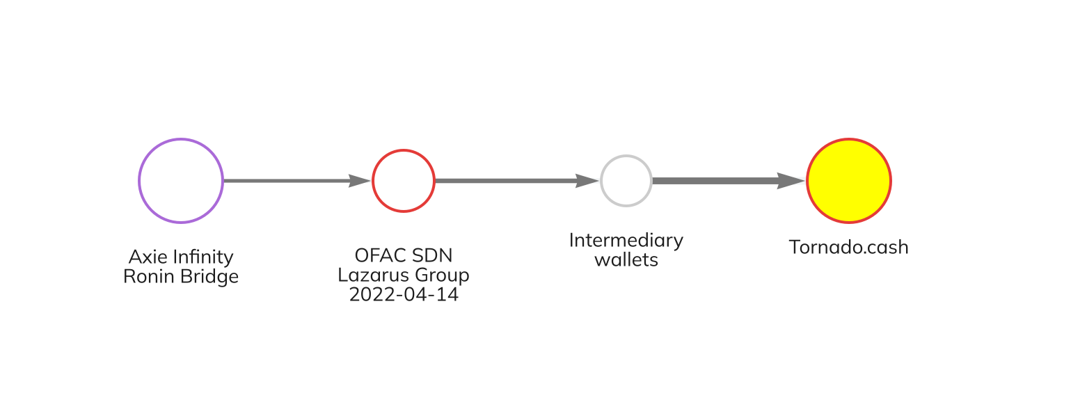 In March 2022, Lazarus Group hackers stole over $620 million worth of cryptocurrency from the Ronin Bridge protocol in the biggest cryptocurrency hack ever. That theft is part of a much larger trend we’ve observed over the last year of increased stolen funds, mostly from DeFi protocols, and especially from cross-chain bridges. Lazarus Group is one of the biggest perpetrators of these DeFi hacks. Soon after the Ronin Bridge theft, the hackers sent much of those funds to Tornado Cash in order to be laundered.