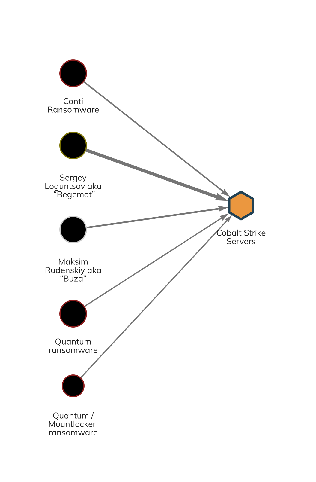 Some of the wallets belonging to individuals sanctioned today indicate connections to or shared infrastructure providers with newer ransomware strains that have emerged since Conti’s decline, such as Royal, Quantum, and Mountlocker. Below we see payments for Cobalt Strike servers — a popular penetration testing tool — from two of the actors sanctioned today, plus wallets associated with Conti, Quantum, and Mountlocker.