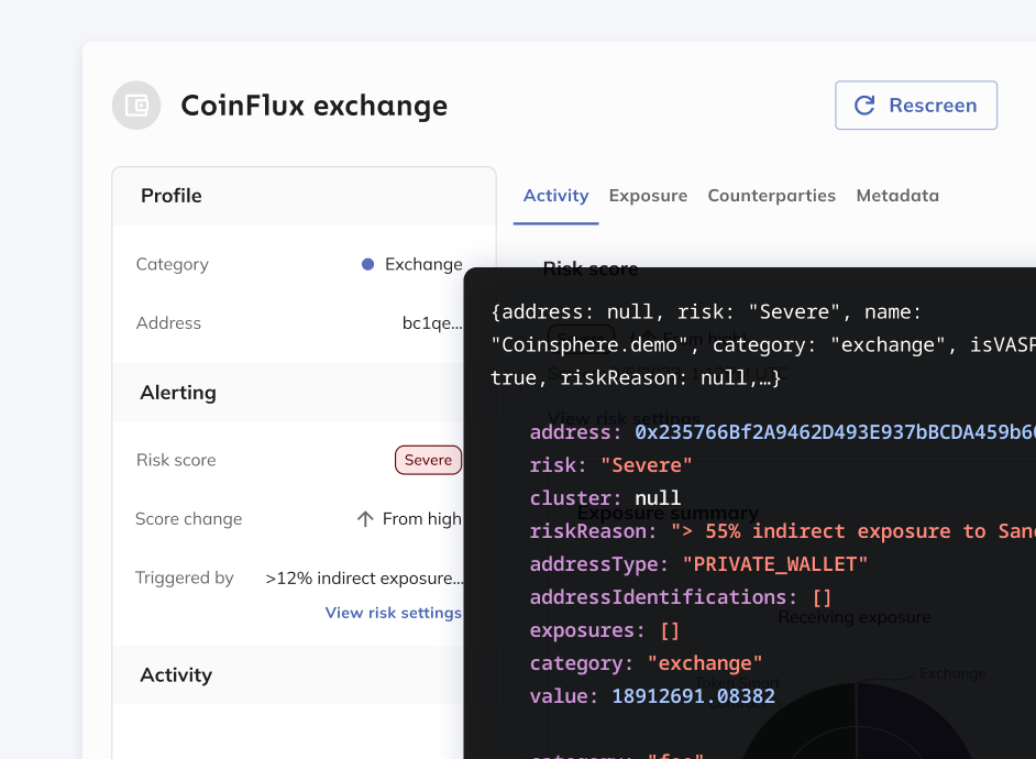Identify risky wallets with precision and comprehensively screen addresses to understand risk, exposure and counterparties. Automate user workflows to support legitimate users on your platform while blocking risky or illicit actors.
