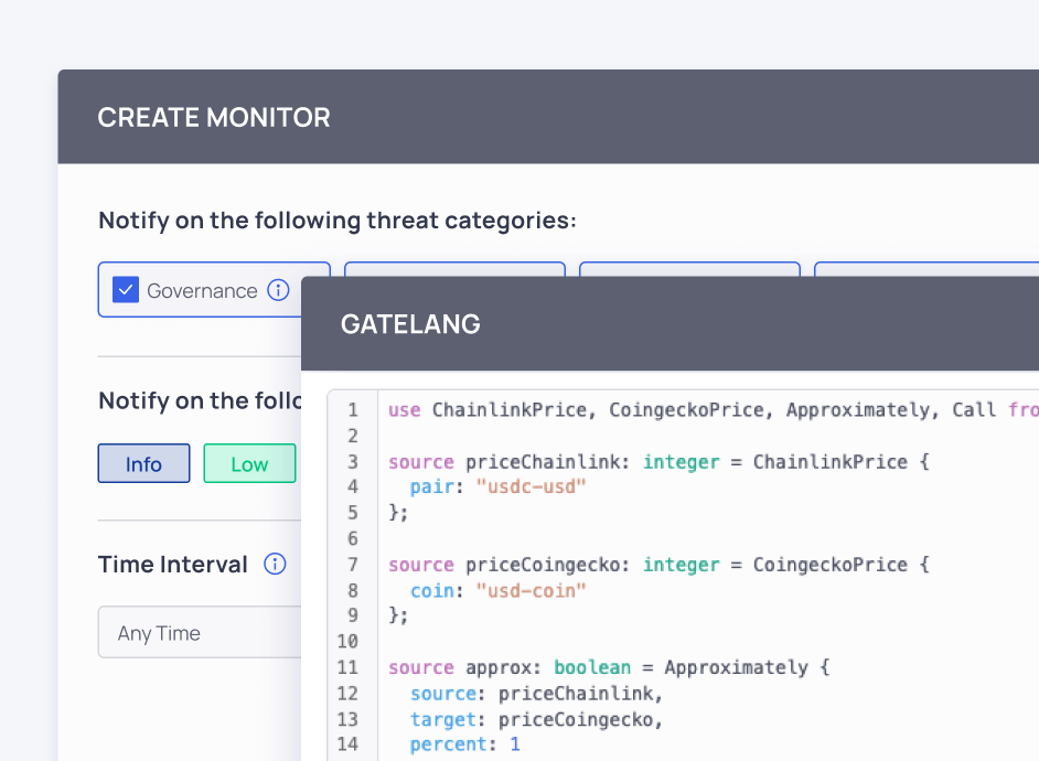 Configure detection to match your security posture — from out-of-the-box monitors to advanced custom scripting via Gatelang.