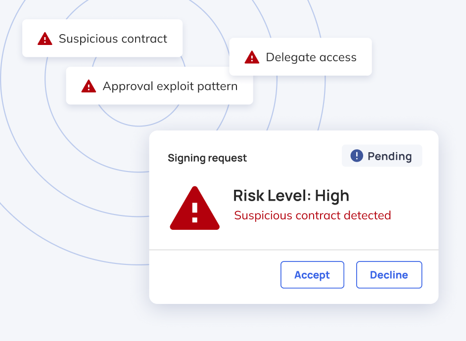 Every signature request is enriched with actionable insights — so teams can identify red flags, confirm destinations, and ensure only trusted contracts are approved.
