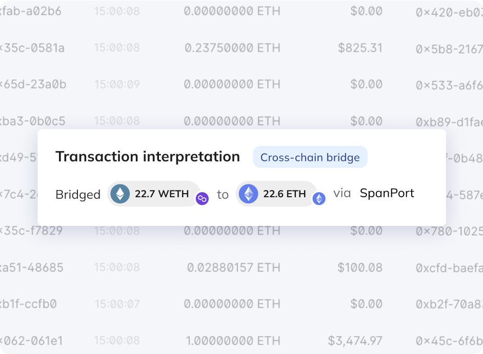 Tasks that once demanded deep expertise and hours of parsing now happen in a click. Swaps, bridges, mixers, and complex contract activity are auto-interpreted into clear, human-readable steps – collapsing obfuscation and surfacing leads instantly.