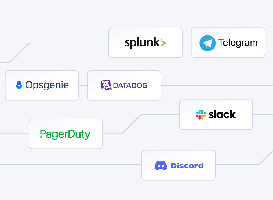 Onboard and secure operations in under 20 minutes. Connect with integrations and automated workflows across Slack, Telegram, PagerDuty, email and more, so your team can review incidents and take action.
