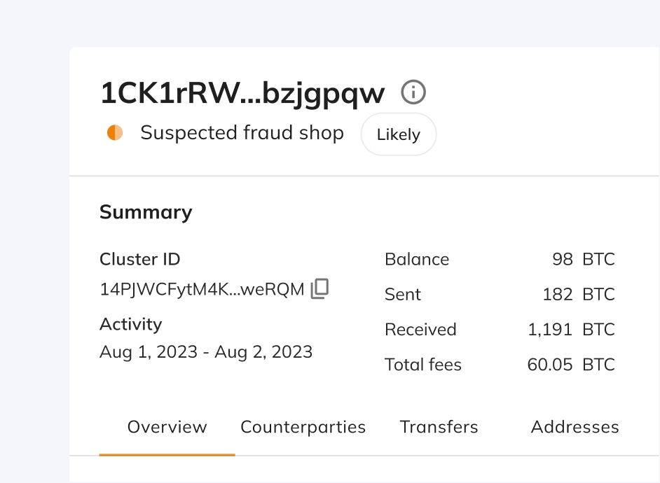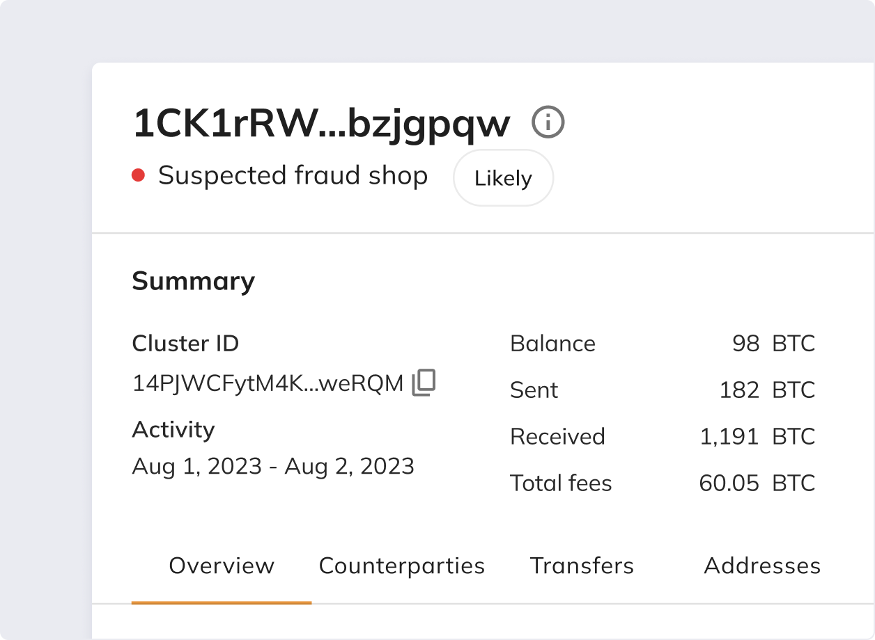 Gain unprecedented insight into unidentified crypto addresses – helping you surface hidden threats, mitigate risks, and take action faster.