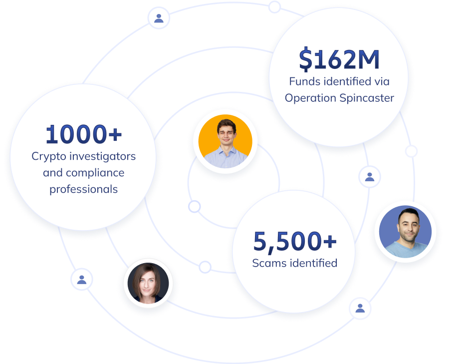 Chainalysis provides a force multiplier for your organization. Our training and services professionals have backgrounds in law enforcement, national security, regulation, tax, compliance, and data science, enabling us to provide data solutions, complex investigations support, and more to help you stay ahead.